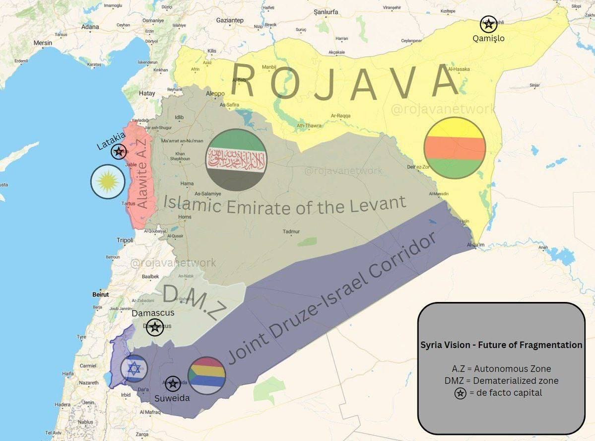 يصبح جنوب سوريا محمية إسرائيلية رسمية “دروزستان”، بينما يندمج الشمال أكثر مع تركيا.